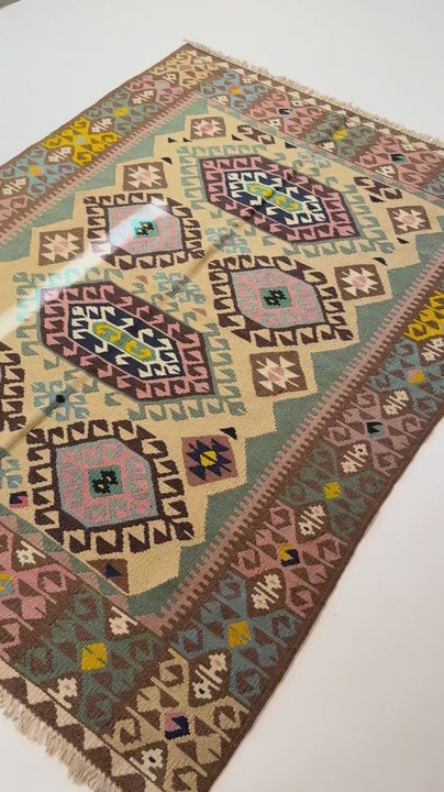 Dieser handgewebte Vintage-Kelim ist ein Unikat – entstanden aus der stillen Kraft anatolischer Frauen, die ihre Lebenswelt in Muster übersetzten. Gefertigt aus 100 % von Hand gesponnener Schafwolle (teilweise kombiniert mit Baumwolle oder Ziegenhaar), trägt jeder Teppich eine eigene Geschichte in sich – von Schutz, Schönheit und Verbundenheit.